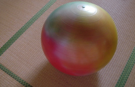 身長に合わせて直径55センチのボール。 これに座ってテレビを見たり、足で持ち上げたり。