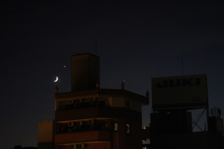 街の光の渦をものともせず、燦然と輝く姿に魅せられて このあと二人で広島市街西の「太田川放水路」まで出かけました。