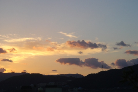 しばらく前からの風水ブーム、各種占い、色彩の心理学など まず人の内に不安があって 条件は揃いました。 ところで、占い師自身が なかなか深いではありませんか。 ベランダから見た夕陽です。 「どうして向かいのビルが映らなかったのぉ」、とは夫の弁。 向かいのビル、とはホテルであります。 物干し竿の上に軽く固定して右に身体をひねると |