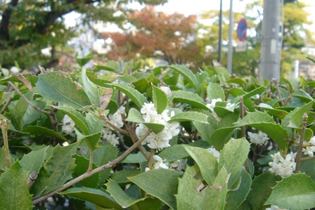 金木犀と入れ替わるように、ひっそりと白い花をつける柊です。