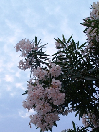 ご覧のとおりの空に夾竹桃が揺れるだけでございました。