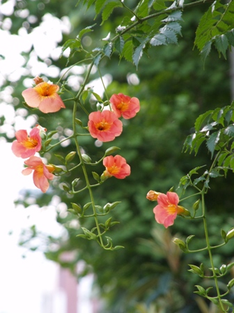 誰が植えたのか、道路脇に茂っているノウゼンカズラです。 我が家のベランダは昨年1個咲いたような気がしますが 今年は未だ見かけません。