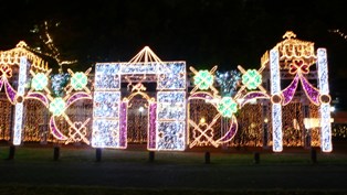 水面に映る木々を写し撮りたくて、夫は柵を越え