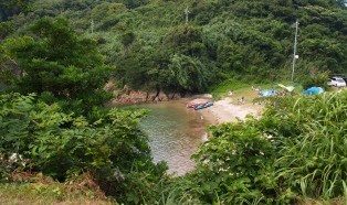 浜田マリン大橋を渡ると、キャンプもできる小さな浜があった。
