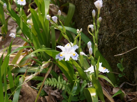 その形からアヤメ科であることは容易に想像がつく。 控えめで清楚な姿にひかれて、これまで何度も撮ったのだが 何度写真に撮ってもボケ加減で思ったようにいかない。