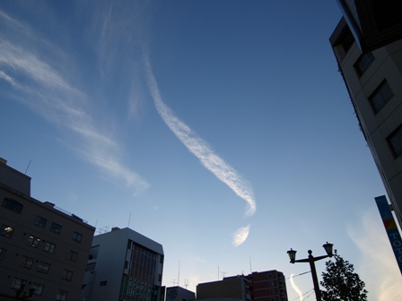 ところで、夫も同じ風景をお客様先から戻る道中で見ていたようです。 「いい雲だから」 と電話を入れてくれたと後で聞いたのですが 息抜きのつもりで屋外に出たとき 美しいリボンのような雲が昇っていくところだったので カメラを携えて再び出かけた後だったのでした。