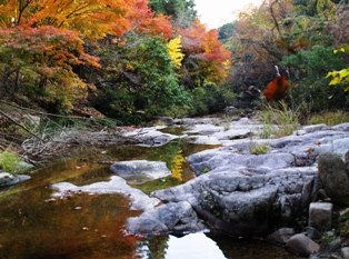 手招きする夫について右手に進み降りてゆくと 錦の揺れる清流があった。