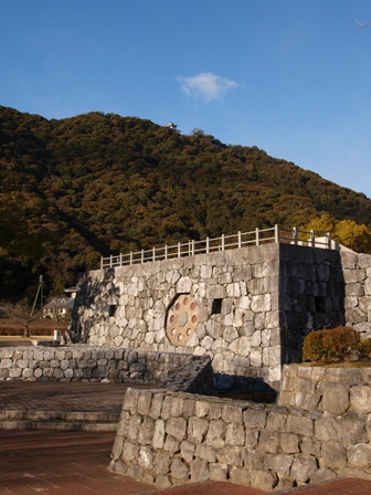 吉香公園から仰いだ空に岩国城が見えています。 山頂までロープウェイもありますが、徒歩片道45分。 運動不足とお嘆きの方、いかがでしょう。