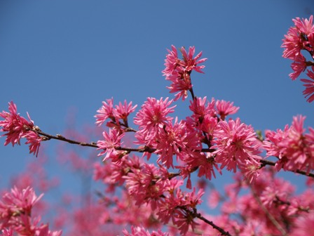 一昨年は曇り、昨年は雨続きでやっと手に入れた青空。 今ひとときを謳歌する菊桃は可憐で力強く、輝く命にこちらまで若返る思いがしました。